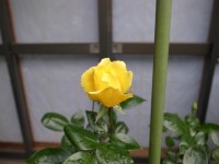 黄色いバラが開花しました(ゴールデン・シャワーズ)。すごく楽しみにしていた作出年が1956年の黄色です。