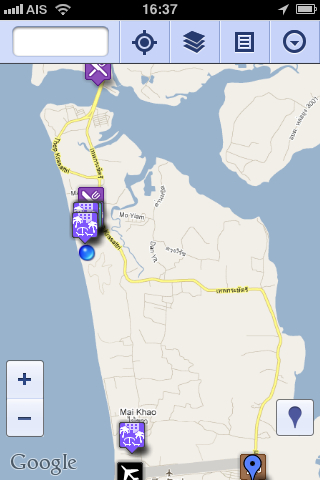 みんなで作るプーケットリゾートマップは、Googleさんのマイマップ機能を使って作っていますが、iphoneを利用して簡易カーナビとしても十分使えました、たいへん便利です。