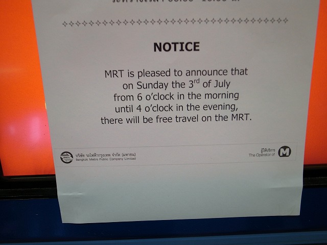 バンコクのMRTが、「ただ」だった日