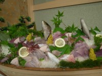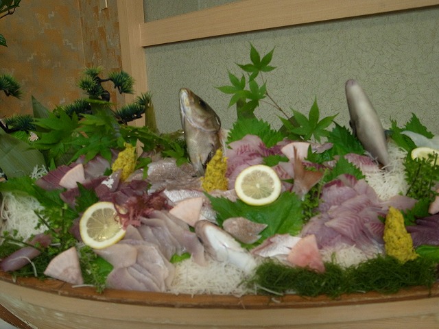 夜には皆で宴会です!!それぞれが釣った魚の一部を拠出して、ホテルの料理人さんにお造りにしてもらい宴会を盛り上げます。