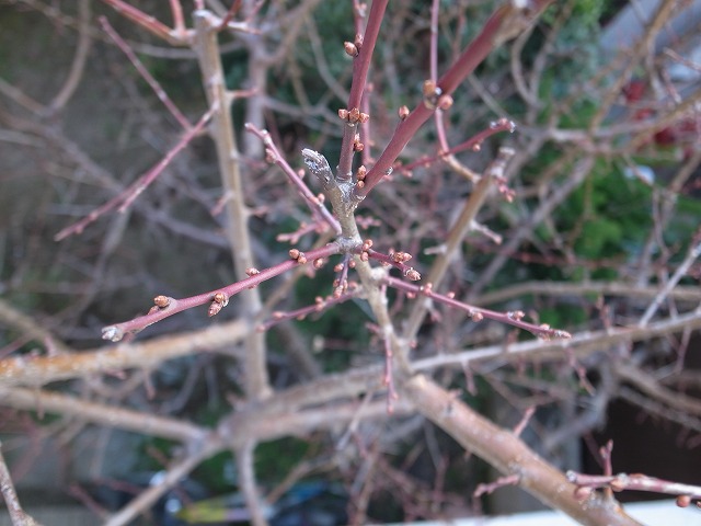 今日は寒い中でも少しずつ芽を膨らませている柿(左)と梅(右)の様子を写しました。