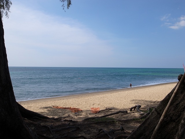 マッサージのお姉さまたちはお暇なご様子。。。チャイニーズニューイヤー休暇も終わって人も少なくなったのでしょう。まったりした雰囲気が漂っています。マッサージ小屋のほうへ近寄っていくと、私たちがお客さんだと分かり反応がありました。仕切っているらしき人が2人を指名して、彼女たちが私たちのマッサージにあたってくれます。。。と、夫を担当する女性の大きいこと!!!!その体重で乗られたら息ができないかもしれません!いーえ、骨折間違いなしかもしれない!というほどの巨体でした。 私担当の女性は彼女ほど大きくなかったけど、大柄な年配の人でした。熟練したマッサージ師さんかなぁ~と期待したのですが・・・・・。結論から言うと、ナイヤンビーチのマッサージのほうが100バーツ安くて(300バーツ)上手です!