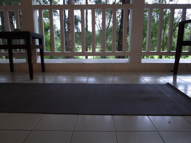 この時間にベランダにヨガマットをしいて、太陽礼拝から始めます。