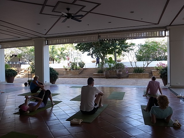 これは、ヨガクラス。朝の8:10から50分間のクラスです。