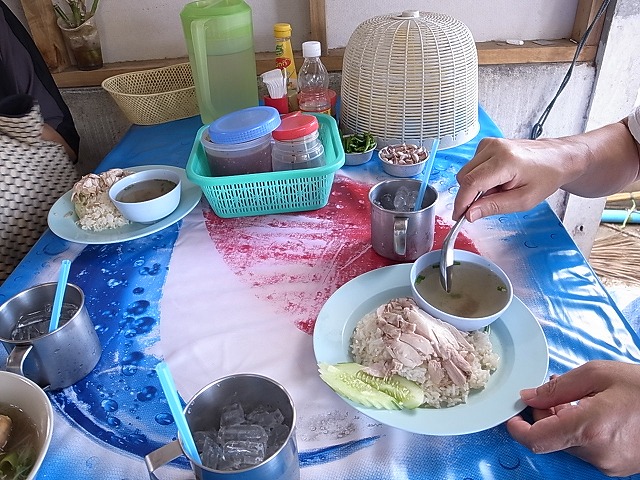 チキンライスやヌードルの写真が店先に貼ってあったので、指さして、注文。