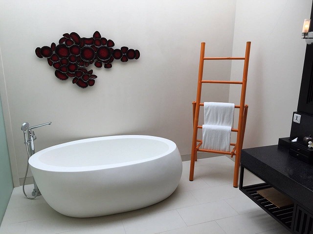 以前の記事で、私たちがアナンタラヴィラのファーストゲストだったと書きましたが、あの時はバスタブに水をはると、泥水のように濁った水で・・・上海暮らしで天然バスクリン風呂には慣れている私たちでさえ、チョット濁りすぎ!・・・と思った。そんないろいろあったバスタブ・・・バスルーム・・・。