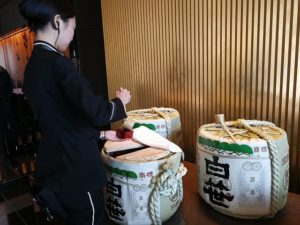 お正月はロビーで樽酒が振る舞われていました。(7日まで)