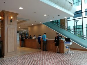 入り口には、ホテルのベルボーイのような人がいて、タクシーのドアを開けると、車いすが必要かどうかを聞かれた。