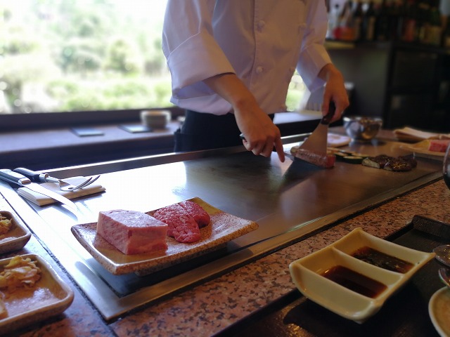 予約はしてなかったけれど、何とか2人はカウンター席(鉄板の前)に入れたのでラッキーです。
