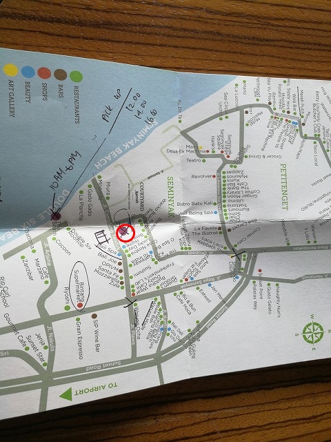 これはコートヤードでもらった地図です。赤〇がホテルの位置です。
