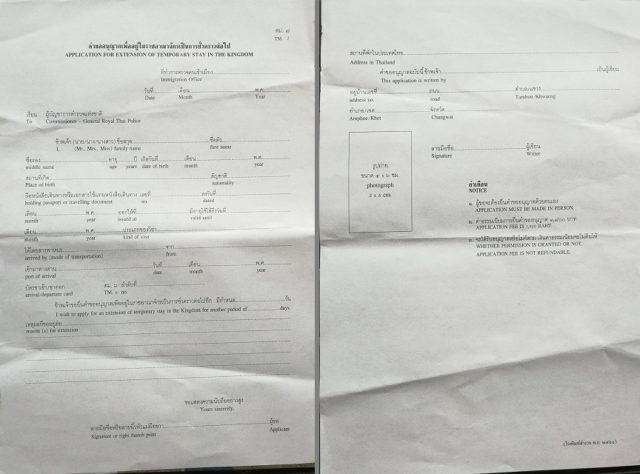 ・申請書類(30日間のビザ延長なら書類はTM.7です。ネットダウンロードできます)