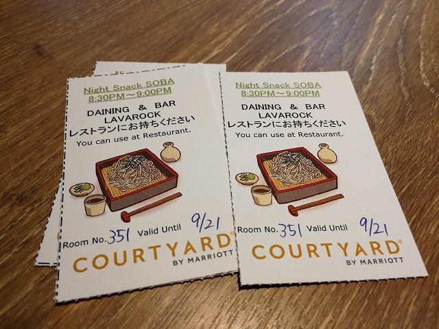 チェックインの時にお蕎麦券を頂いたので、滞在中はお腹に余裕を残して、毎日20:30を楽しみに待っていました。