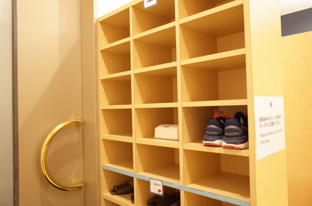 まず、更衣室に入ると、靴を履き替え、フロントで渡されたロッカーを使い着替えます。