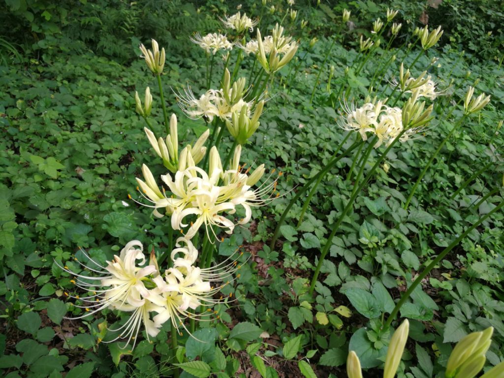 シロバナヒガンバナ9/15に撮影 3日前と比べると黄みを帯びた白色に変わった。
