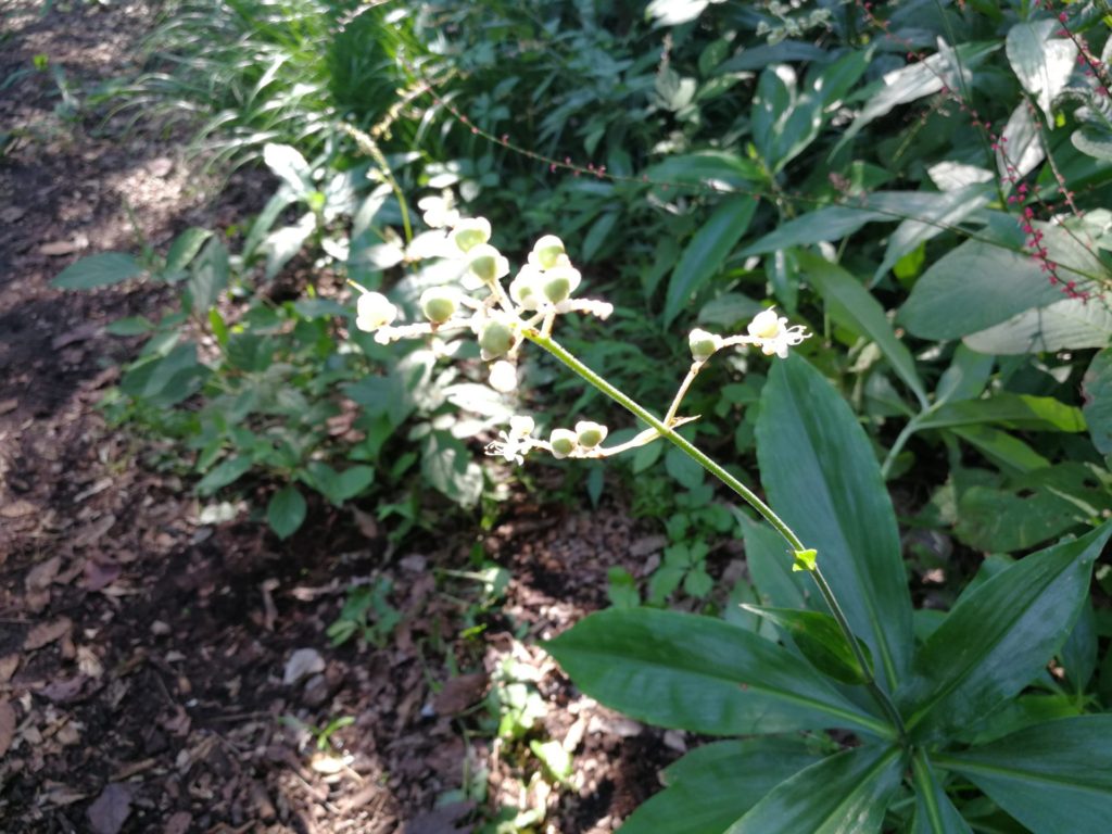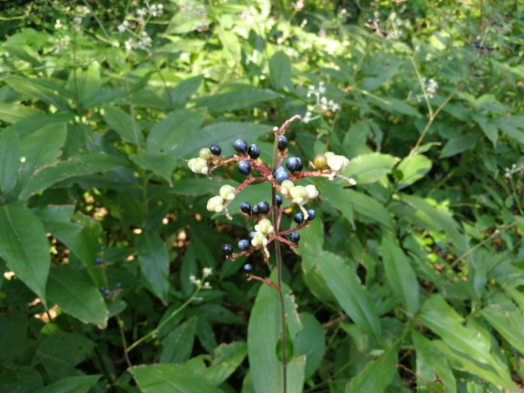 ヤブミョウガ・・・花が終わり、実がつき始めています。