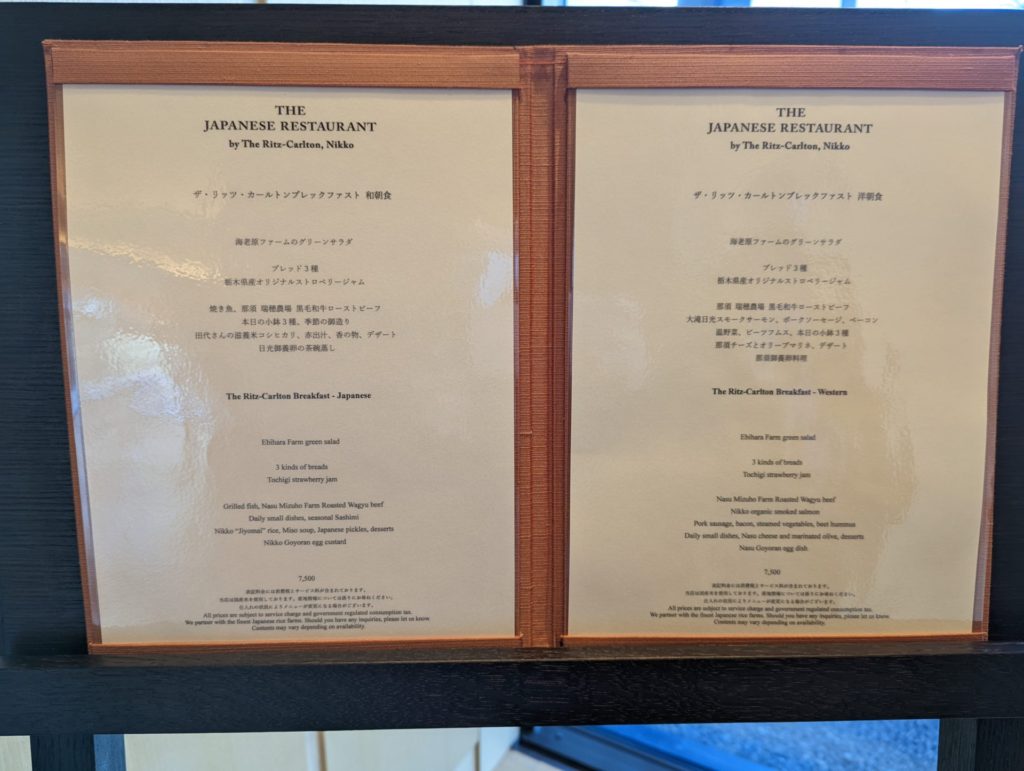 リッツカールトン日光|朝食メニュー:和朝食&洋朝食 ジャパニーズレストラン