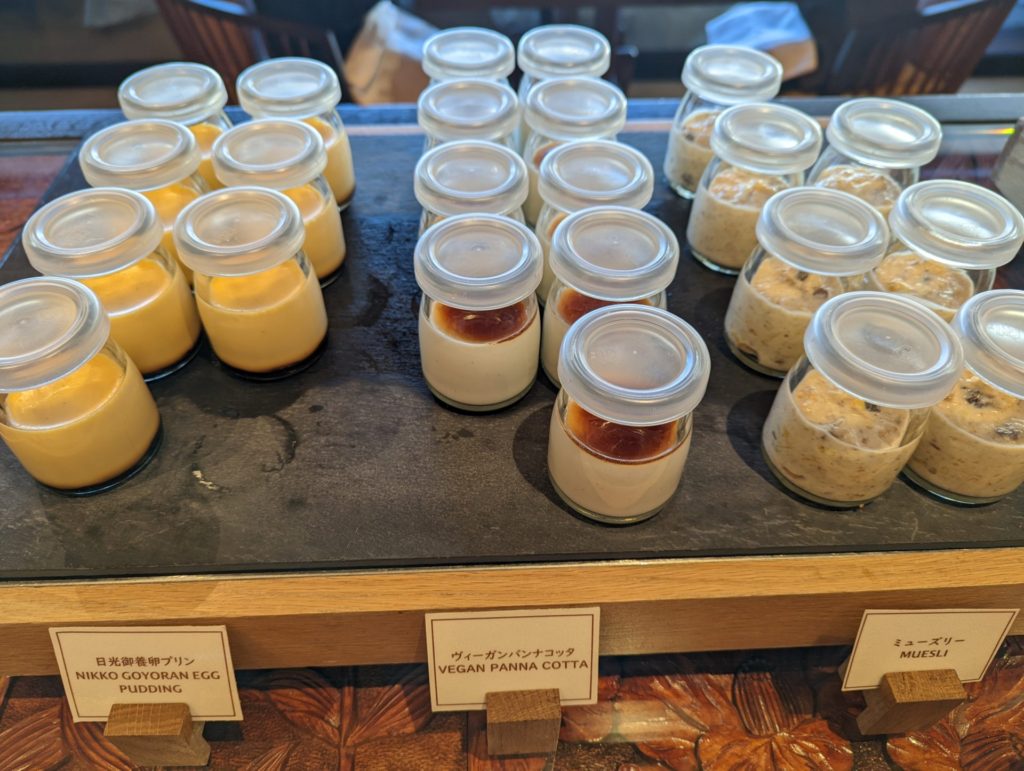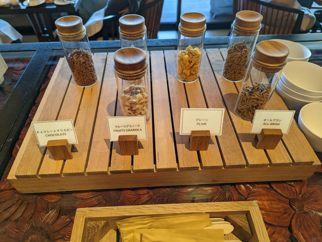 隣は、ミューズリー(ブッフェで牛乳やデザート類が数種類置かれています。)