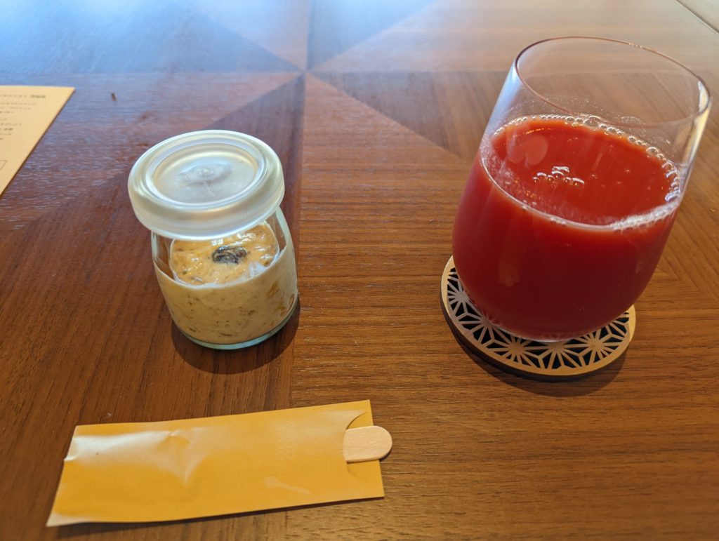 朝はトマトジュース!和食なのに??まっ、いいか。