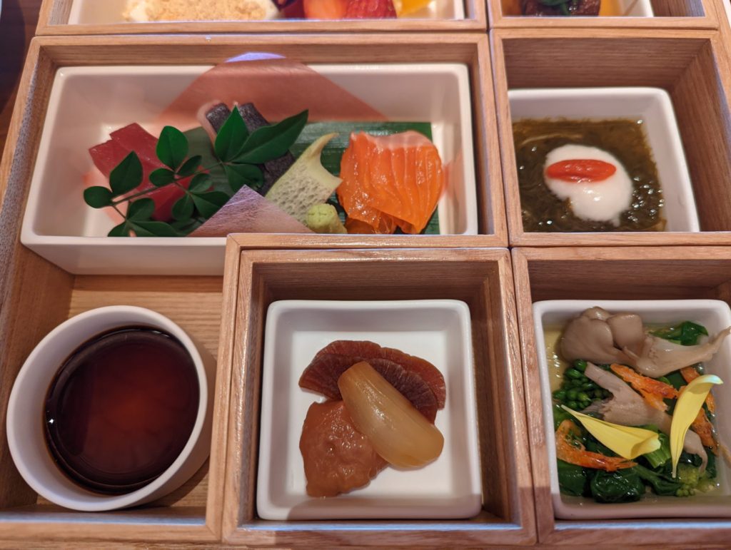 木製の木箱をお膳のように?お弁当のようにかな?きれいに盛り付けられて運ばれてきました。