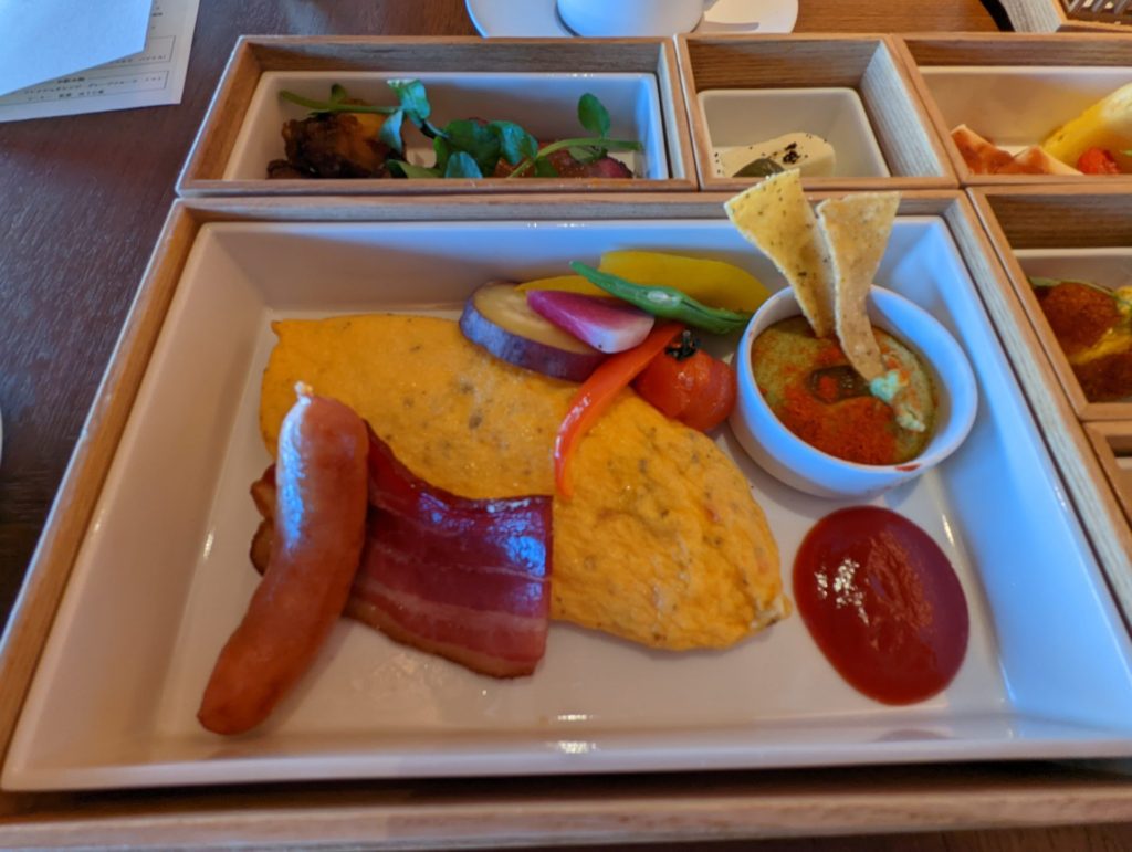 オムレツは中までしっかり火を通して頂いています。