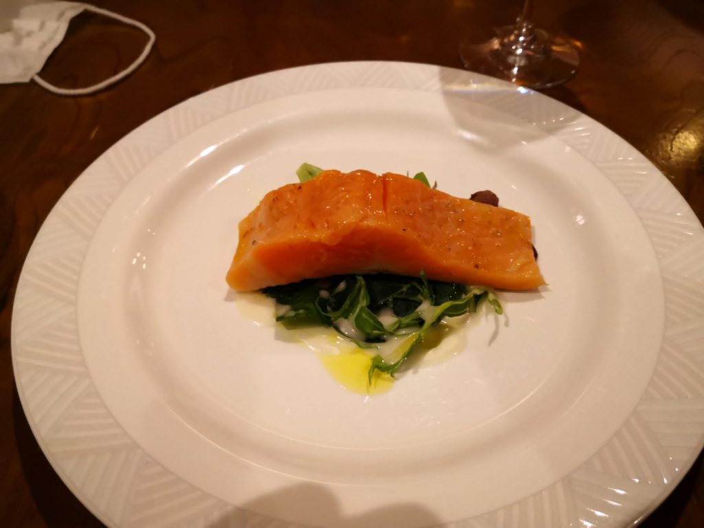 低温調理したやしお鱒です。