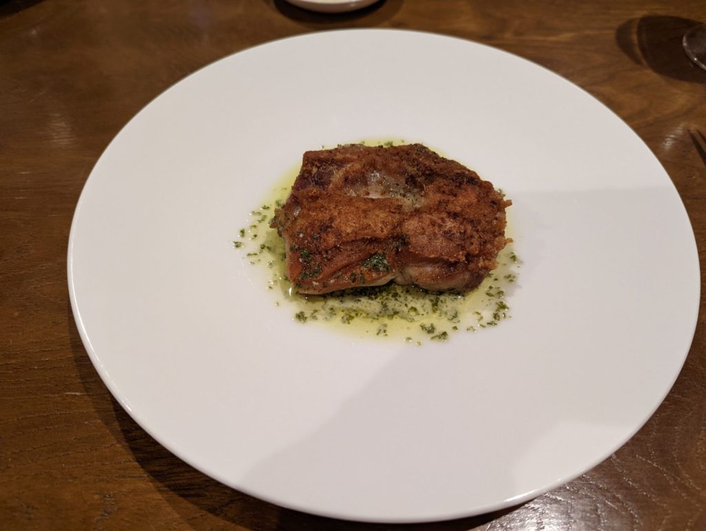 バターもいいけれど、特にメインの鶏肉の香草ソースをつけて食べるのが美味しかった。