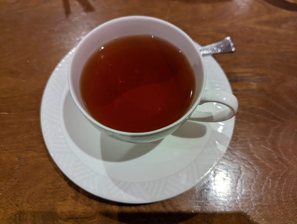 本日のデザートと紅茶こちらは私と同じしろごまプリンとストレートの紅茶を頂きました。