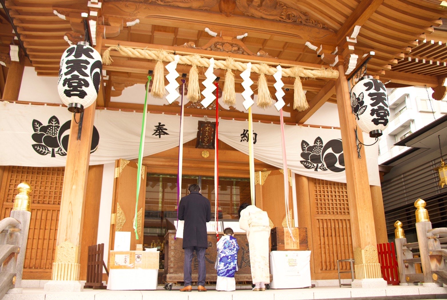 当日は快晴!穏やかな日差しの中、大國魂神社にはお宮参り、七五三参りに加えて結婚式も!と、幸せいっぱいの人たちで賑やかな平和な時が流れていました。